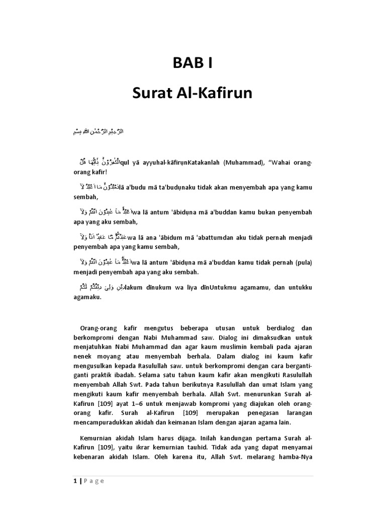 Surat ini terdiri atas 6 ayat dan termasuk surat makkiyah. 0 ratings0% found this document useful (0 votes). Berikut ini terjemahan, asbabun nuzul, dan tafsir surat al kafirun. This is chapter 109 of the noble quran. Dalam hal apa pun tidak jauh dari seperti itu. Surat ini terdiri dari enam ayat dan merupakan surat makkiyah. Aku tidak akan menyembah apa yang kamu sembah. Savesave arti surat al kafirun for later. Quran recitation by abdul hadi kanakeri, english translation of the quran by yusuf ali and tafsir by sayyid abul ala maududi. Kaum kafir banyak sekali yang mencoba untuk menghentika rasulullah saw agar tidak. Surat ini berisi kandungan tentang adanya toleransi dalam keimanan dan peribadahan. Aku berlindung kepada alloh dari godaan syaitan yang terkutuk. (yaitu) kebiasaan mereka bepergian pada musim dingin.