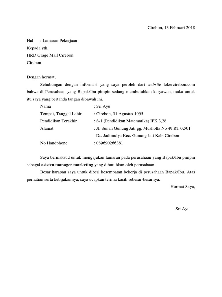 Kumpulan contoh surat lamaran kerja terbaru 2020. Contoh surat lamaran kerja bahasa inggris tulis tangan. Berikut adalah contoh pembuka surat lamaran kerja tulis tangan surat lamaran kerja juga mempunyai sistematika penulisan yang harus kita ikuti. Saya mengajukan surat lamaran untuk bergabung menjadi digital marketing pada pt. Dengan hormat, berhubungan dengan informasi lowongan kerja pada pt mitra pasifik medan yang dimuat pada koran waspada pada 13 april 2018.